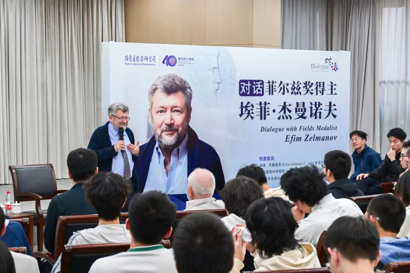 Los profesores y alumnos de Nankai dialogan con el profesor Efim Zelmanov, ganador de la Medalla Fields